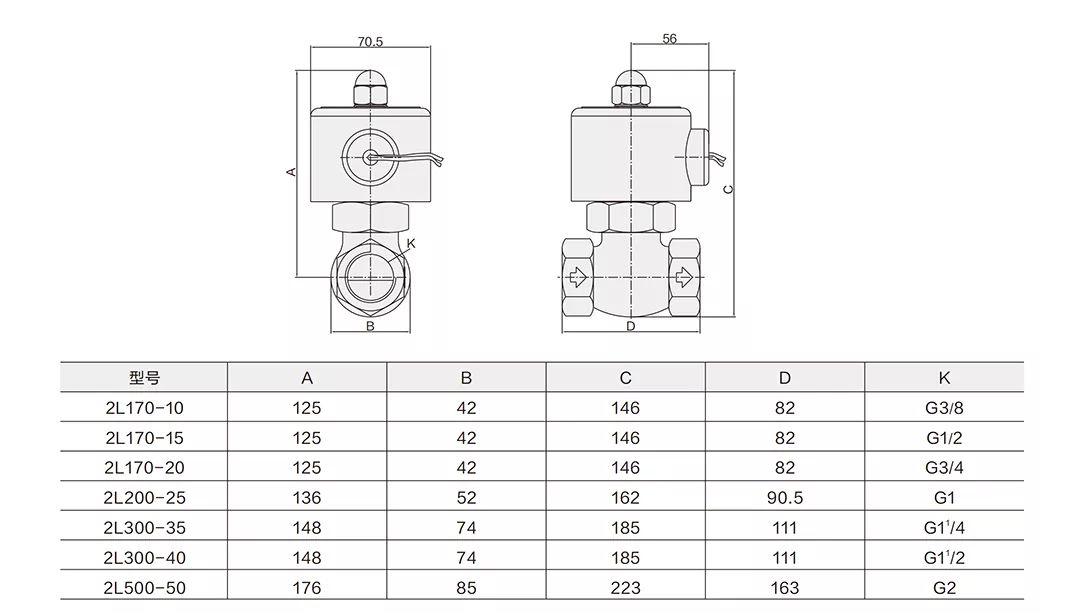 2L parní solenoidový ventil 2cestný Vlastnosti: