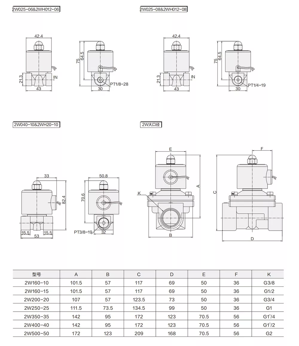 2W 2-cestný pneumatický solenoidový ventil normálně uzavřený solenoidový ventil se vyznačuje přímo působícím designem, postaveným s přesně opracovaným tělem ventilu, vysoce výkonnou cívkou, pístem z nerezové oceli a spolehlivými těsnicími součástmi. Tato řada zahrnuje dva typy průtoku: model s malým průtokem pro standardní systémy a model s velkým průtokem pro vysokokapacitní řízení kapaliny.