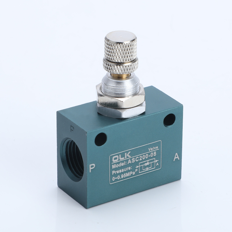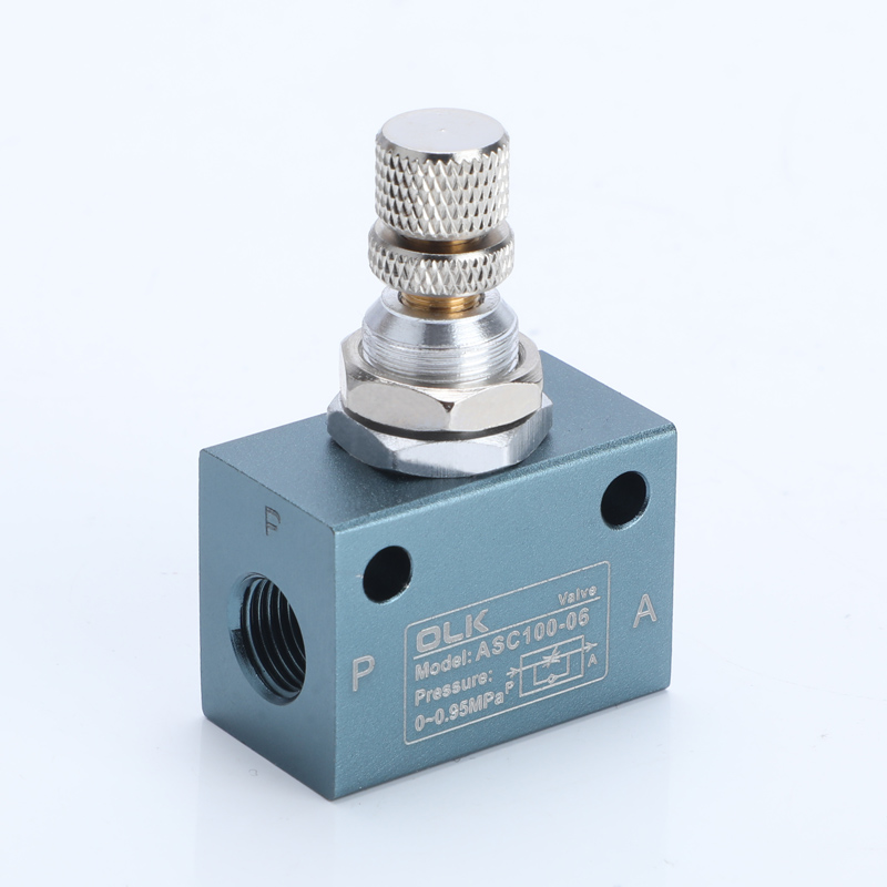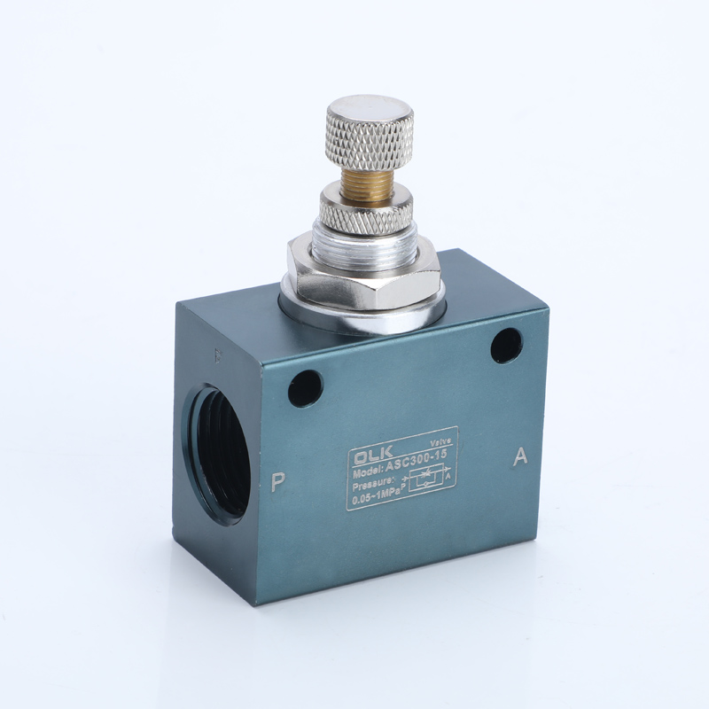 Škrtící ventil ASC vyrobený OLK (ouleikai) má velký pracovní vzduchový otvor, který zajišťuje velký průtok plynu a zároveň snižuje tlakovou ztrátu, což výrazně zlepšuje efektivitu práce. Jsou citlivější z hlediska škrcení výfuku a proces regulace tlaku je pohodlnější a jednodušší. Otáčení ve směru hodinových ručiček může zvýšit průtok, otáčení proti směru hodinových ručiček může snížit průtok a konstrukce pojistné matice zajišťuje stabilní tlak.