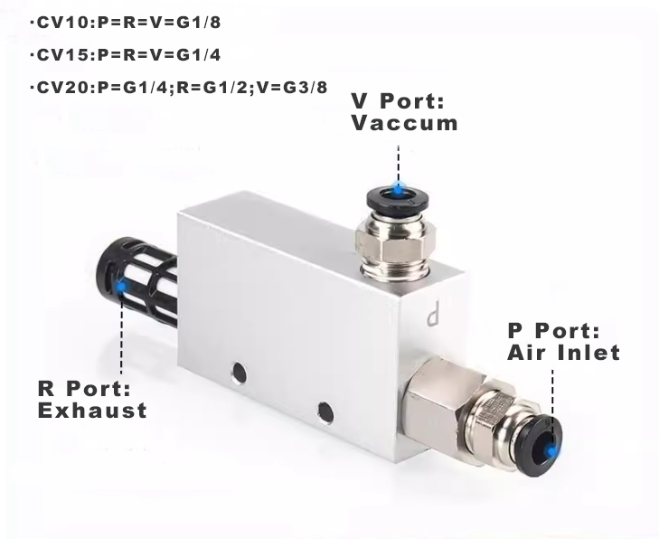 Ouleikai (OLK) CV vakuové generátory se používají k zajištění vakuového prostředí potřebného pro sací trysky nebo příslušenství. Vstupní port by měl být připojen k stlačenému vzduchu, zatímco přísavek je připojen k vakuovému portu. Když stlačený vzduch proudí z sacího portu do výfukového portu, na vakuovém portu se generuje vakuum. Tato vakuová síla může být použita k přilnavosti objektů, dosažení úkolů, jako je stanovení nebo podpora, čímž se zlepšuje provozní účinnost v průmyslové výrobě.