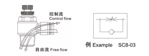 Jednocestný regulační ventil průtoku je regulační ventil průtoku složený z paralelního zpětného ventilu a škrtícího ventilu. Běžně se používá k ovládání rychlosti válce a je také známý jako regulátor rychlosti.
