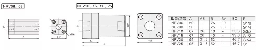 Tento zpětný ventil NRV je lehký, snadno se instaluje a nevyžaduje údržbu. Je široce používán v pneumatických systémech, vodních čerpadlech, vzduchových kompresorech a automatizačních zařízeních všude tam, kde je potřeba zabránit zpětnému toku.