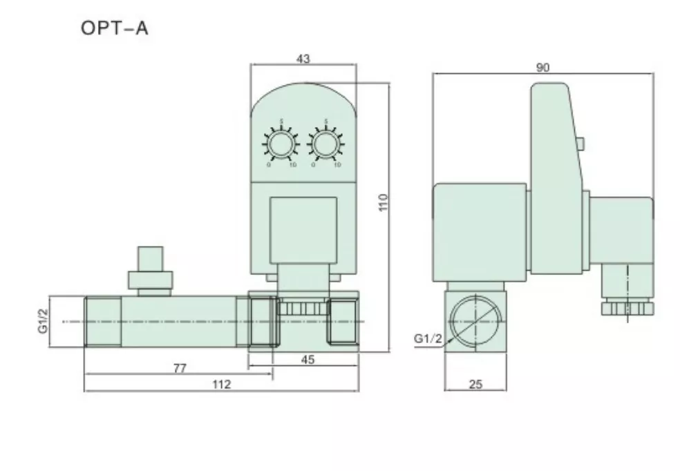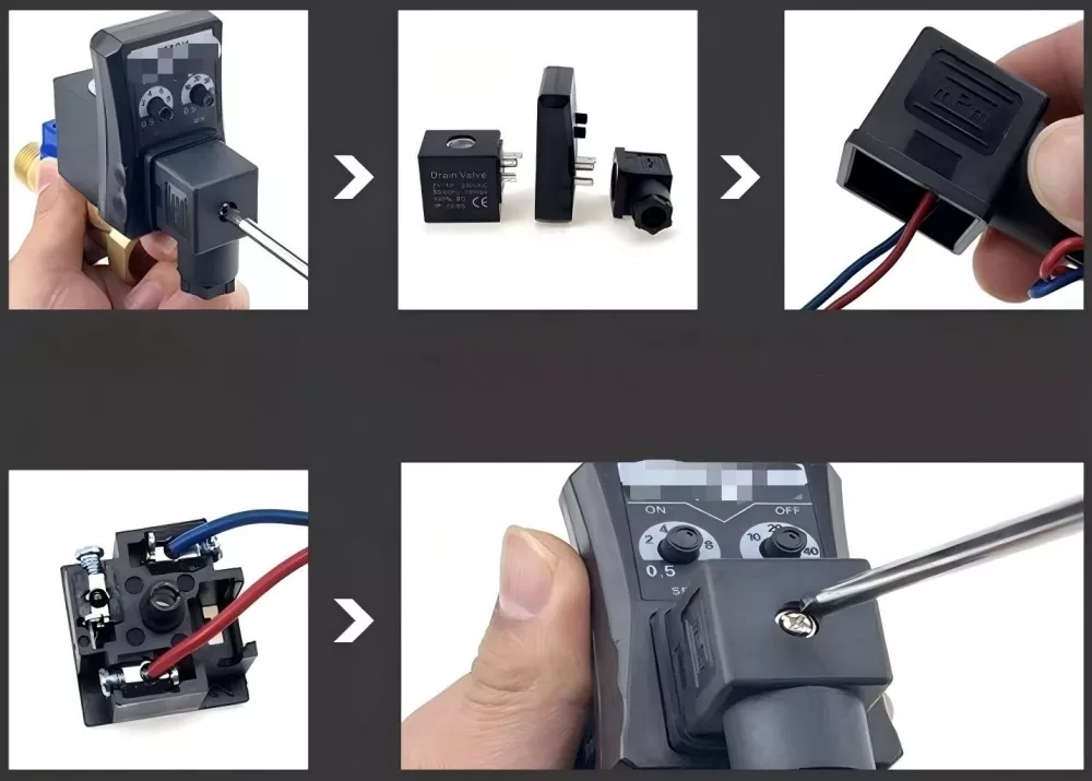 OLK OPT-A Electronic Timer Auto Drain dělená struktura je vhodná pro úzké instalační prostory a nabízí flexibilní směr montáže. Závitová vyvýšená část uprostřed je spojovací port k tělu ventilu. Delší část těla ventilu je vstupní port a kratší hladká strana je vypouštěcí výstup. Ventil podporuje elektrické ovládání + ruční ovládání, poskytuje dvojitou bezpečnostní ochranu. Externí ruční vypouštěcí spínač během výpadku napájení zabraňuje kondenzaci.