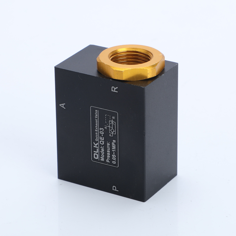 Pneumatický výfukový ventil OLK (OULEIKAI) účinně zkracuje dobu výfuku systému. Válvula de escape QE s velkým průtočným průměrem může rychle vypouštět plyn. Aby bylo zajištěno, že systém může rychle uvolnit tlak plynu a zlepšit efektivitu práce v případě potřeby, doporučuje se instalovat rychlo výfukové ventily řady QE do pozic, kde je v systému potřeba výfuk, aby bylo zajištěno, že výfukový kanál zůstane volný.