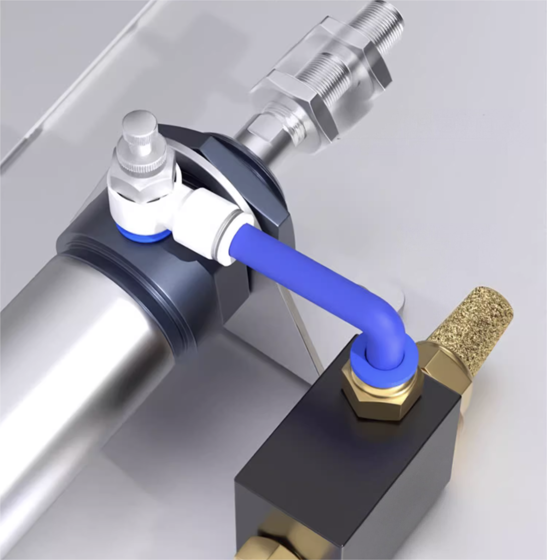 Mezi běžné příslušenství patříPU trubky, nástrčné šroubení (M5, G1/8, G1/4), závitové spojky atlumičepro stabilní a rychlé pneumatické připojení.